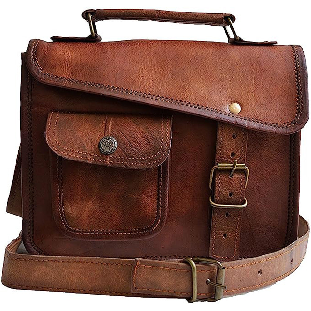 11-inch Vintage Handmade Leather Messenger Bag for Office Document Briefcase and iPad