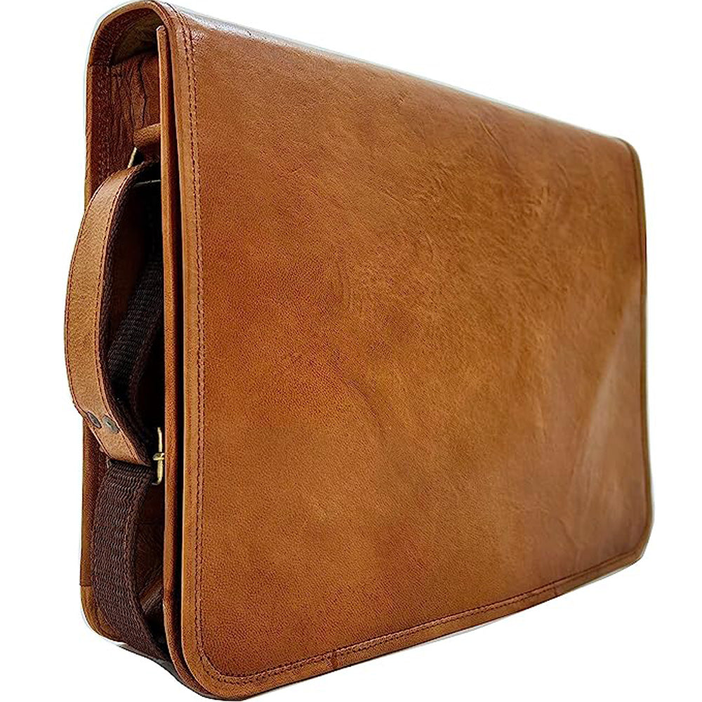 15 INCH Vintage Crossbody Genuine Leather Laptop Messenger Bag for Men and Women - Briefcase Bag For College, Office, Adjustable Shoulder Strap Satchel