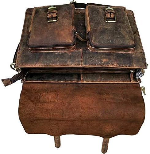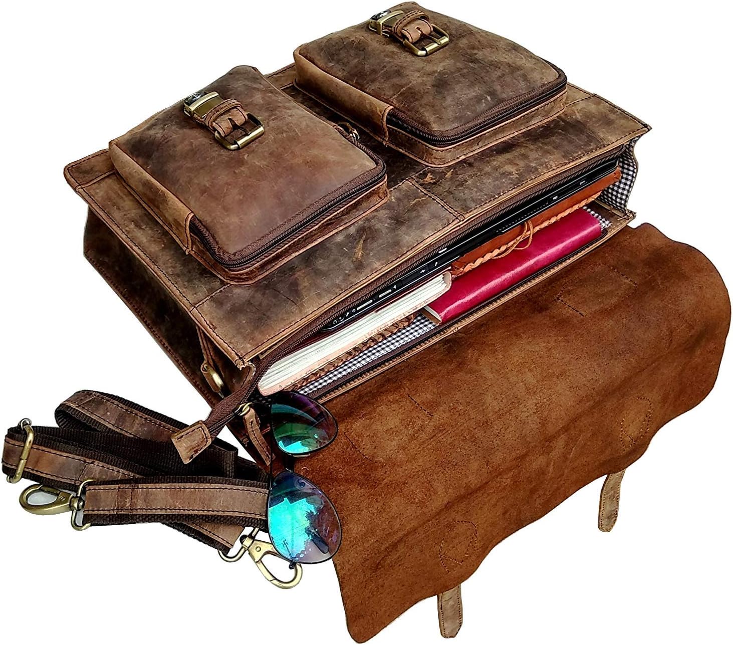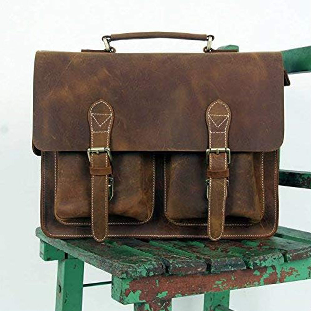 16 Inch Retro Buffalo Hunter Leather Laptop Messenger Bag Office Briefcase College Bag Fits Up to 15.6 Inch Laptop (Matte Brown)