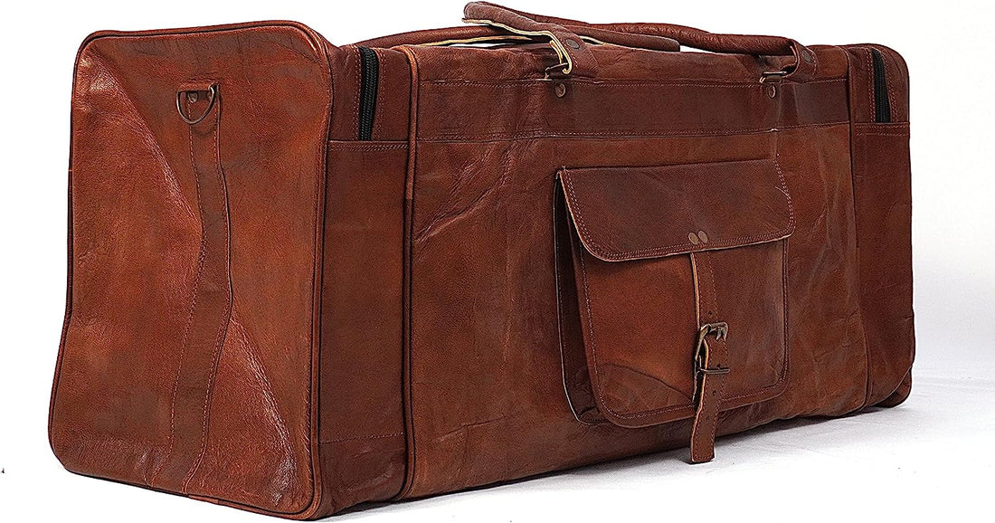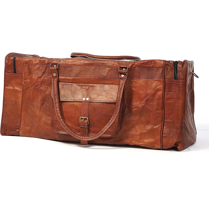 28 inch Large Leather Duffel Bag for Men | Holdall Travel Bag | Weekender Luggage Bag | Overnight Carryon Gym Sports Duffel Bag for Men and Women