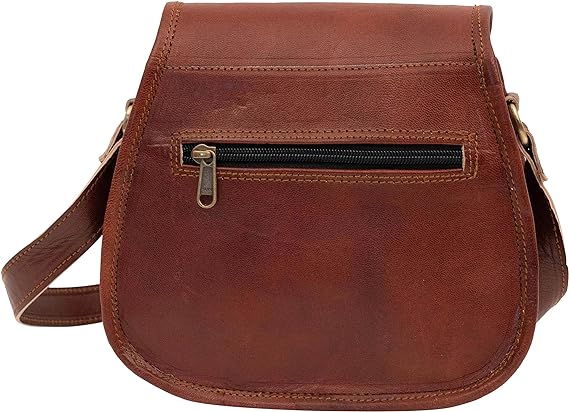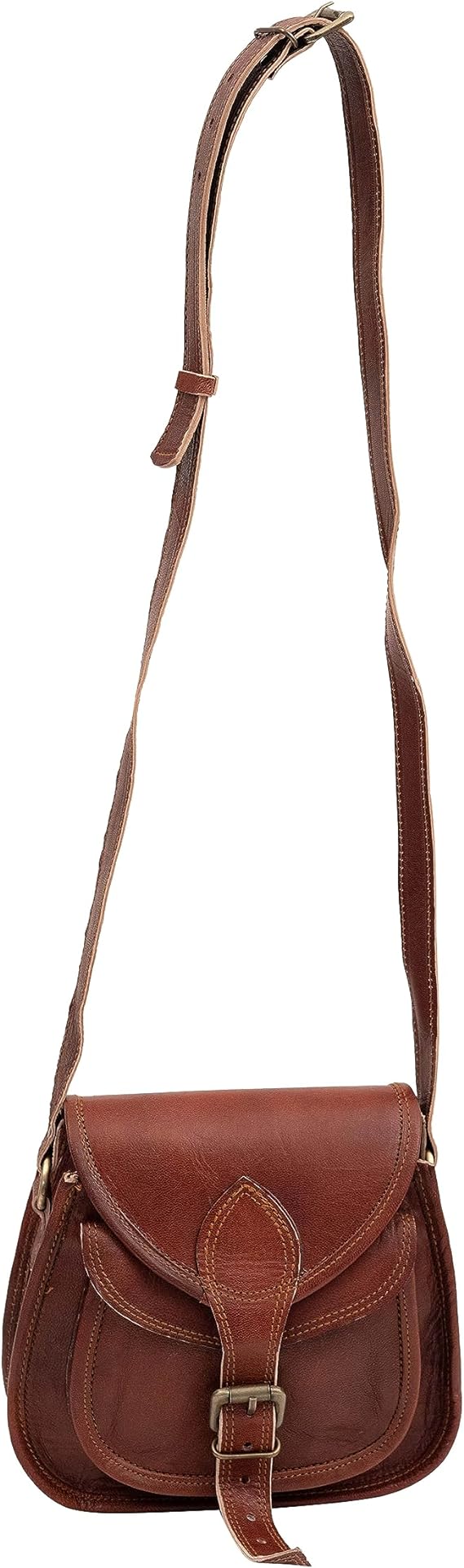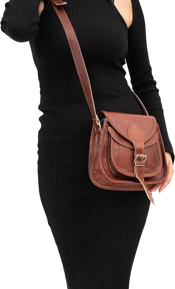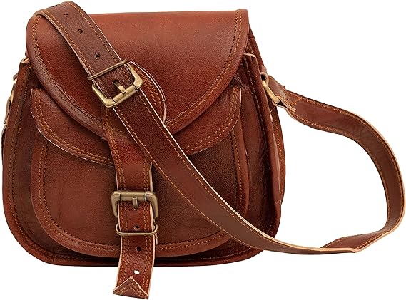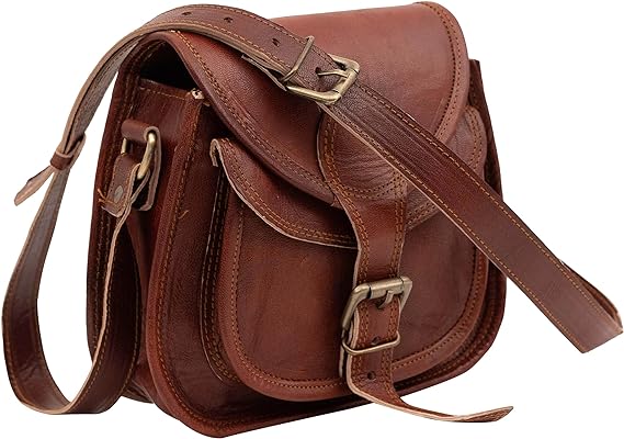 - 100% Genuine Leather (Goat Hide), Color-Brown, Making - Handmade, SIZE;7 x 9 (7 inches Tall and 9inches Wide) with One Outer Pocket and adjustable shoulder strap.