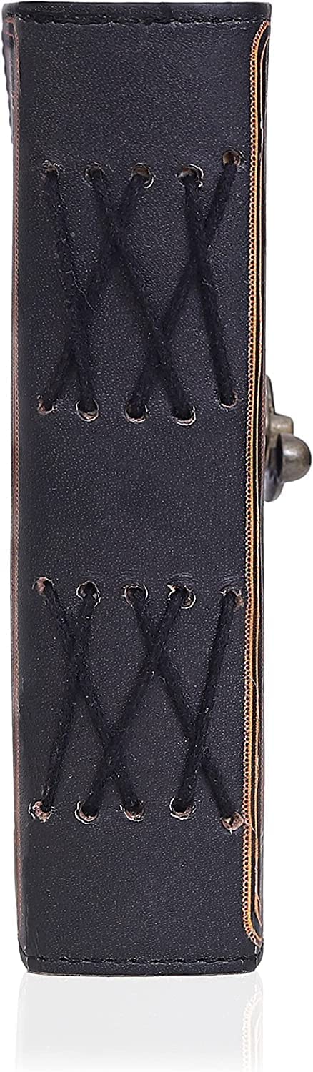 Handmade vintage leather journal with deckle edge paper skull the lovers journal Antique blank spell notebook leather daily lock clasp journal 4x6 inch contains 100 recycled Deckle edge paper leaves (200 pages). The Dead Lovers print is a powerful sign of eternal love. focuses on honoring, praying for, and remembering dead family and friends. The notebook features a brown thread binding. The book is approximately 6 inches tall, 4 inches wide, and 1.5 inches thick, and the pages are unlined. The notebook has an antique C lock to keep your secrets from prying eyes. Handcrafted journals contain acid-free, handmade, archival Quality. This book is great for keeping by the bedside to jot down dreams, or for use as a diary or journal. This brand-new journal makes an ideal gift for that special someone or simply to keep for yourself. A great gift for lovers, tarot aesthetic fans, or anyone really who enjoys handmade stuff made from eco-friendly materials and lots of love Fill your Journal with Breathings of your Heart and Soul The Vintage Lovers Journal is made from 150 GSM Thick and Rustic Paper which makes you feel like you are writing in an old relic. It will hold any ink without any bleed-through. CAUTION: Do not use the hard eraser on paper.