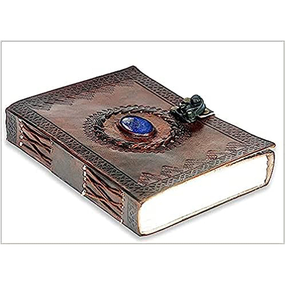 Leather Journal with clasp Gemstone Journal Writing Pad Blank Notebook Handmade Notepad Chakra Journal,Best Present Art Sketchbook Travel Diary To Write Book Of Shadows Refillable Grimoire