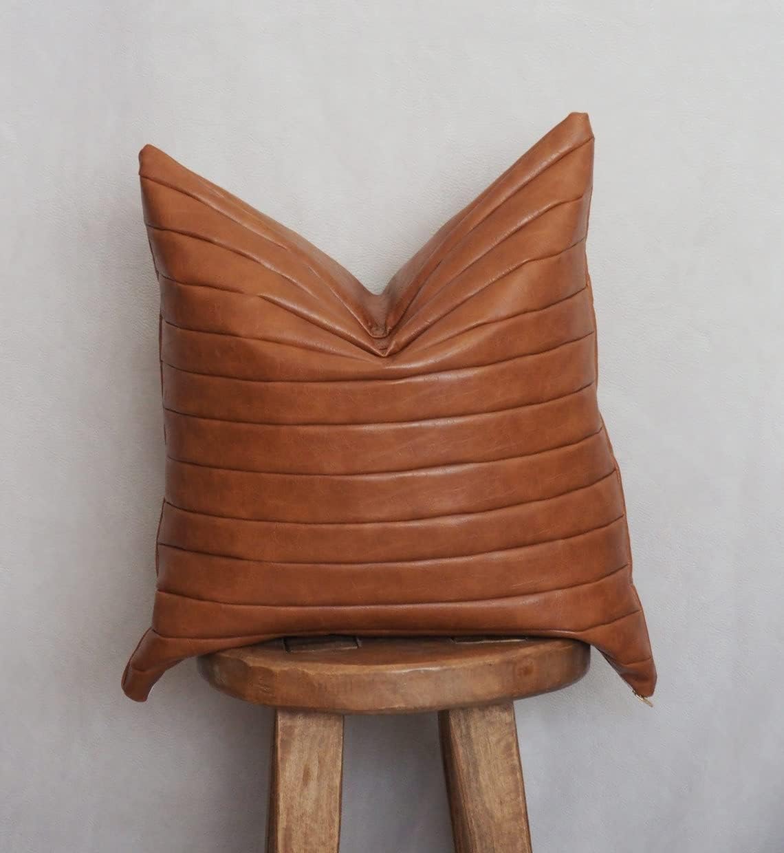 - Add approachable comfort and sophistication to your living space with this leather double sided pillow cover and Modern design pillow with 100% Genuine Leather.