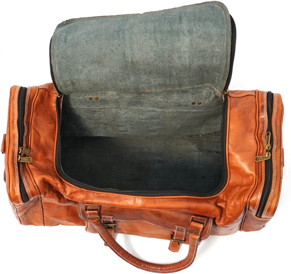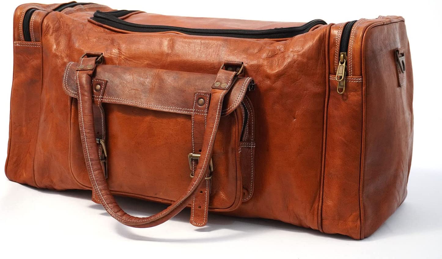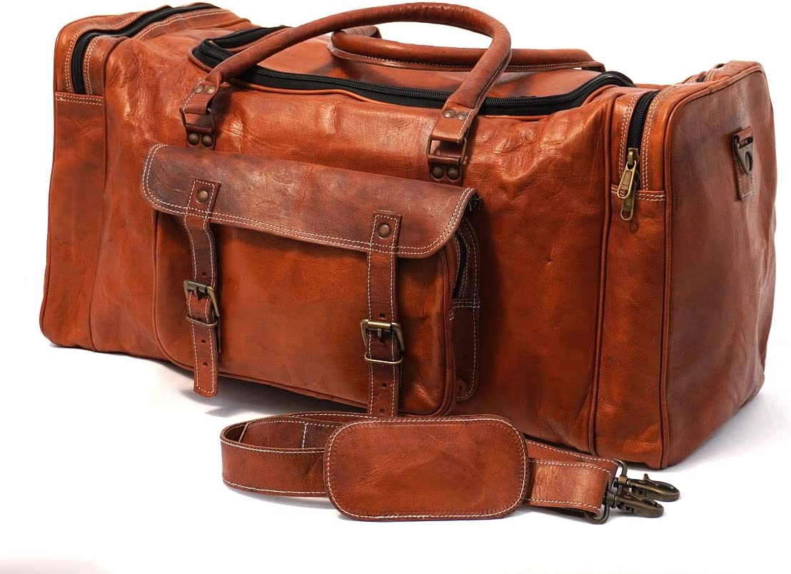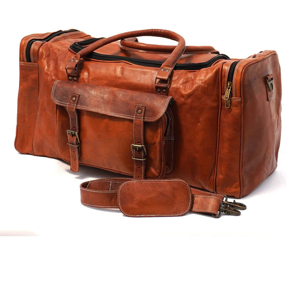 Shy Shy Leather Duffel Bag for Men and Women Full Grain Leather Travel Overnight Weekend Leather Bags Sports Gym Brown Duffel (24 Inch)