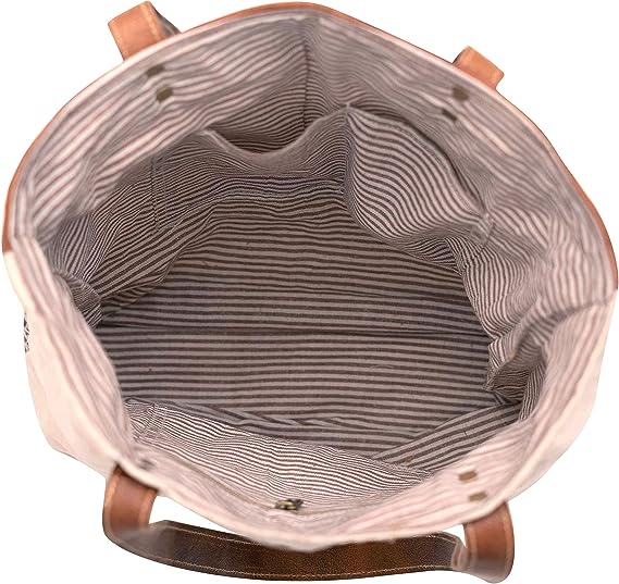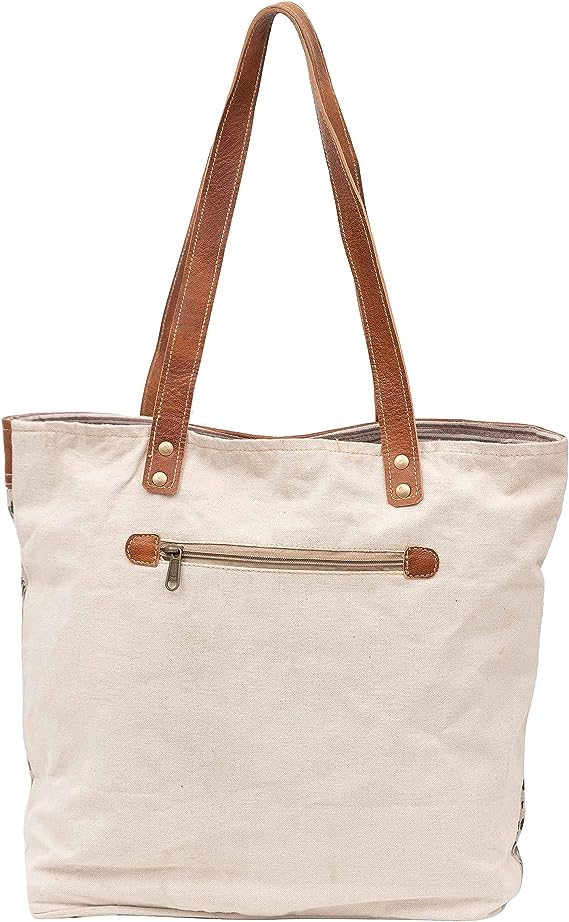 Shy Shy Let's Touch The Sky Leather Bags Bicycle Upcycled Canvas Tote Bag White Tan, Khaki, Brown